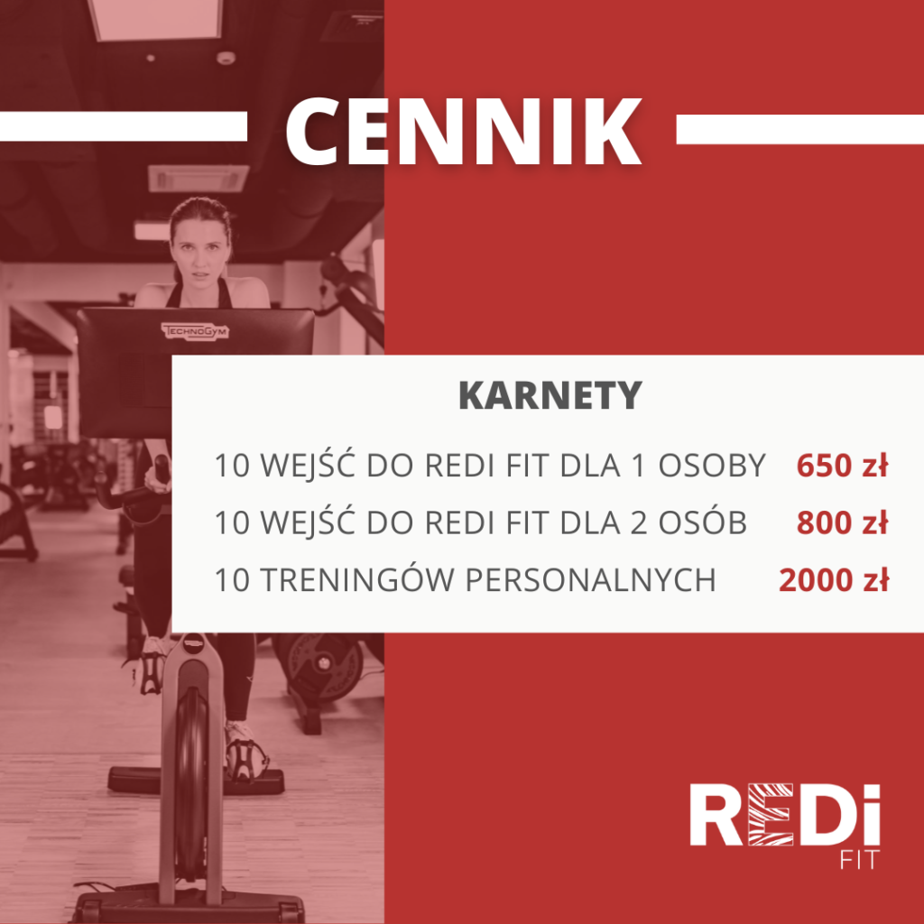 Jeśli jedno wejście do naszej siłowni to dla Ciebie zdecydowanie za mało, to koniecznie zapoznaj się z ofertą karnetów dostępnych w naszym klubie i korzystaj z REDi FIT do woli!